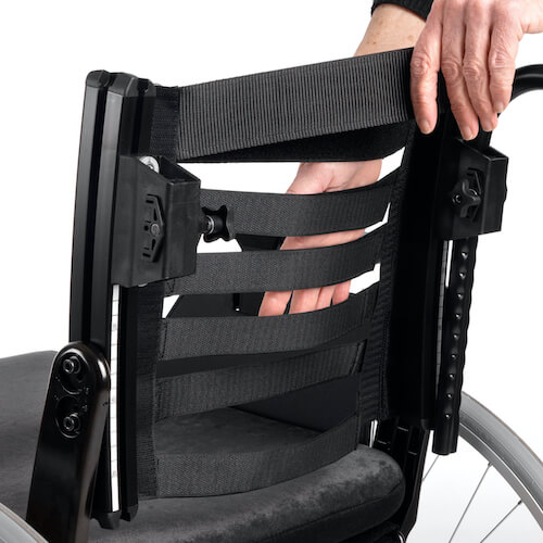 – Cross 5 Tekerlekli Sandalye ‘de güvenlik? İkili anti-tipper tekerlekler geri düşmeyi önler. Bunlar istenildiğinde refakatçi tarafından kolayca katlanabilir.