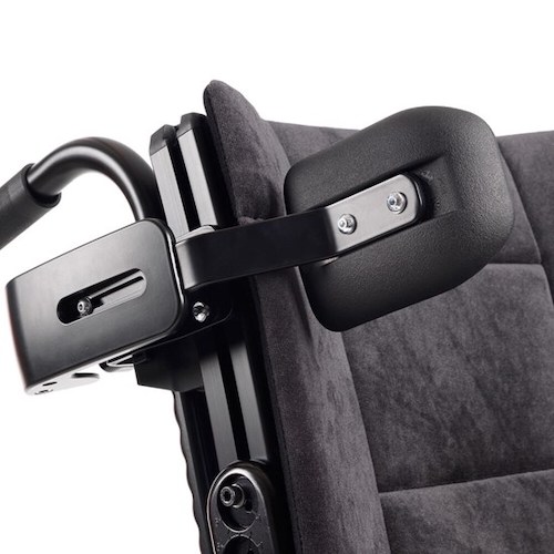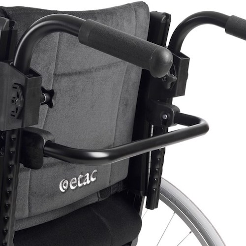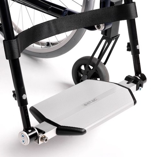 Tekerlekli sandalyeden geri düşmeyi önleyen teleskopik anti-tipper destekleri bulunur.
